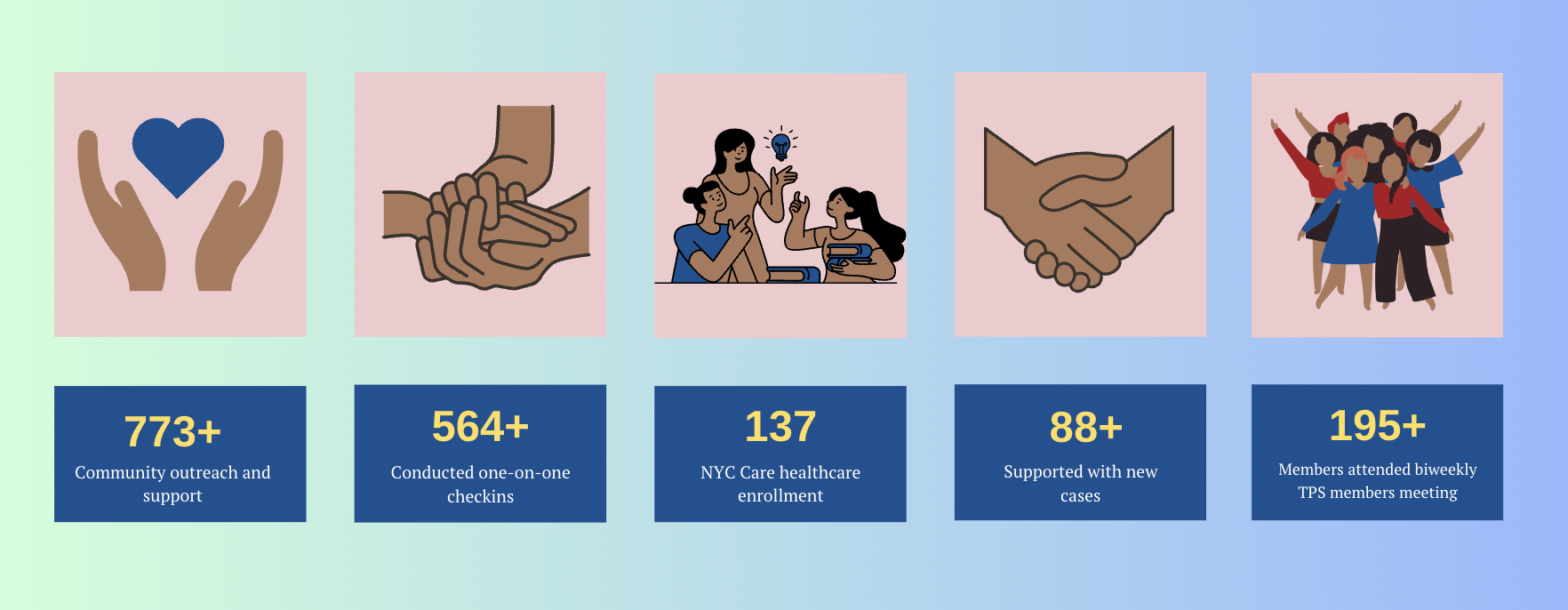 We also organized multiple “Know Your Rights” sessions for our members on immigration issues in collaboration with the Legal Aid Society to create awareness in our community. As new immigrants who are often unaware of their rights, we recognize the crucial role education plays in empowering our community members with the tools to know, use, and shape justice.